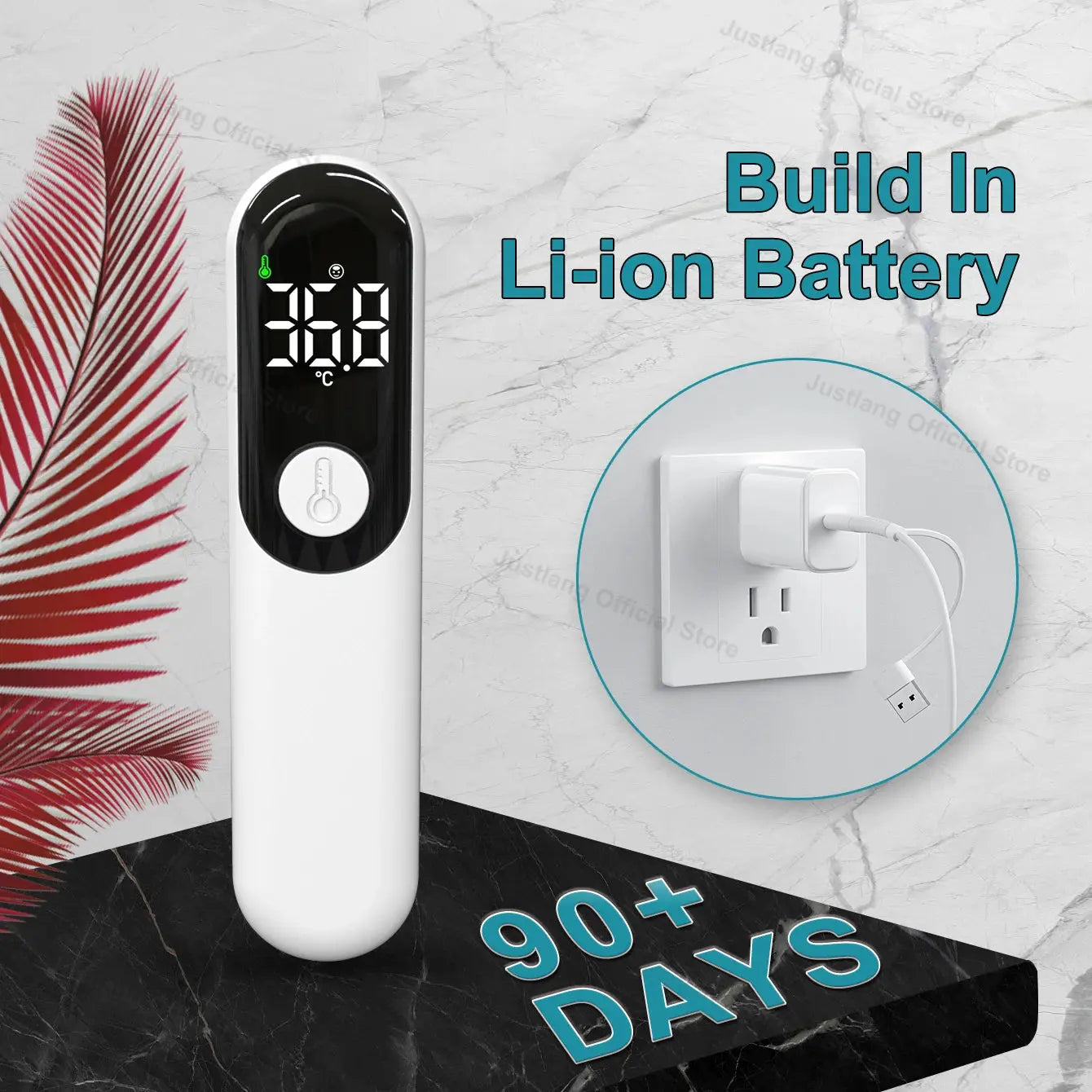 This thermometer is not only reliable, but it also features a sleek, ergonomic design that makes it easy to hold and operate. The large LED display shows temperatures clearly, ensuring you can read it without straining your eyes. Because it's rechargeable, you don't have to worry about constantly replacing batteries, making it both economical and environmentally friendly. This combination of usability and eco-friendliness makes the JUSTLANG thermometer a great choice for any household.