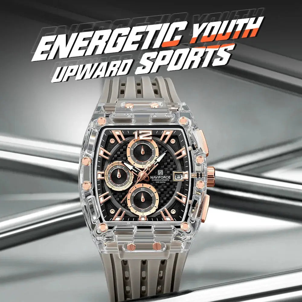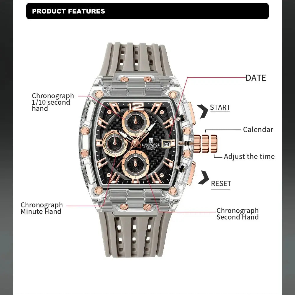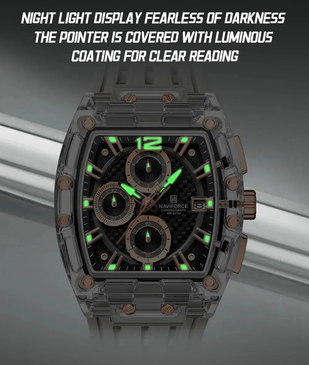New NAVIFORCE Men's Quartz Multifunction Watches Fashion Sports Chronograph 5ATM Waterproof Silicone Band Casual Man Wrist Watch