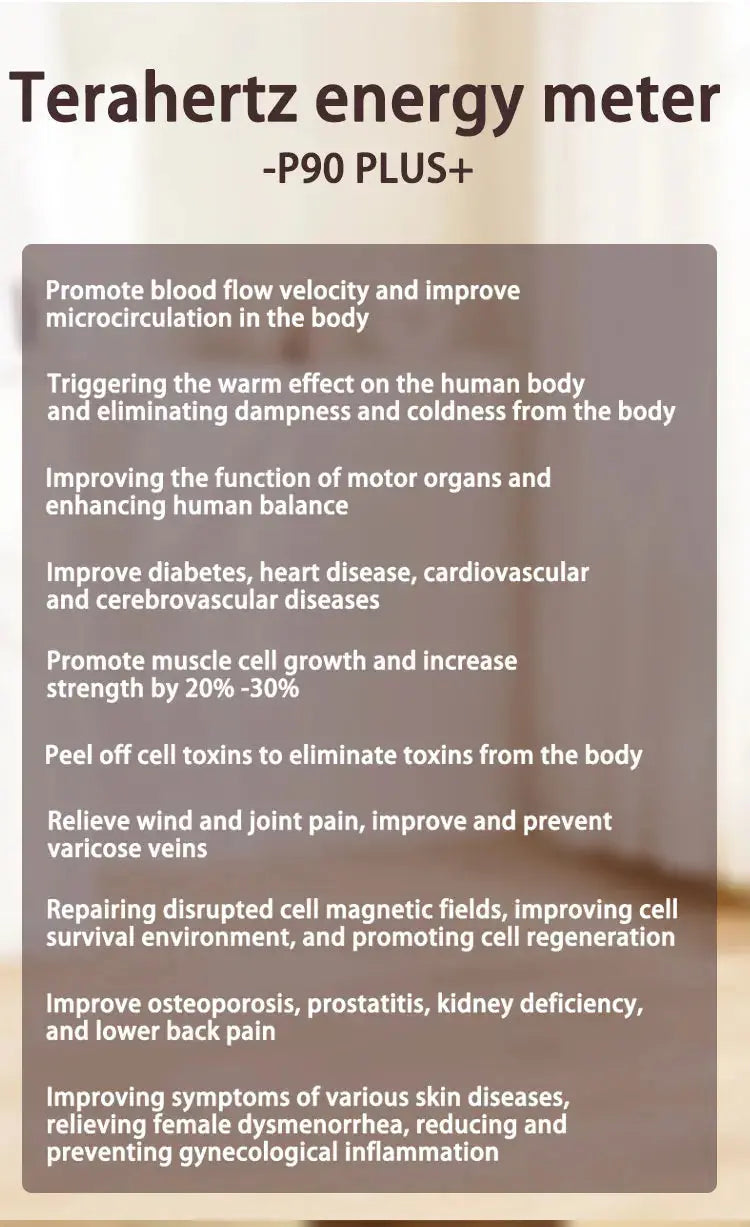 The Terahertz P90 Plus is a cutting-edge magnetic energy meter designed to enhance your home health care routine. This innovative device utilizes terahertz vibrations to promote cellular regeneration and improve overall well-being. The science behind terahertz technology lies in its ability to penetrate biological tissues safely, so you can enjoy therapeutic sessions without any harm to your body. Many users report feeling more energized and relaxed after just a few sessions, proving its effectiveness.