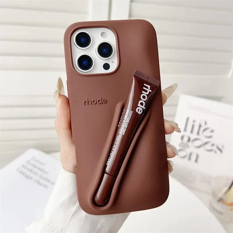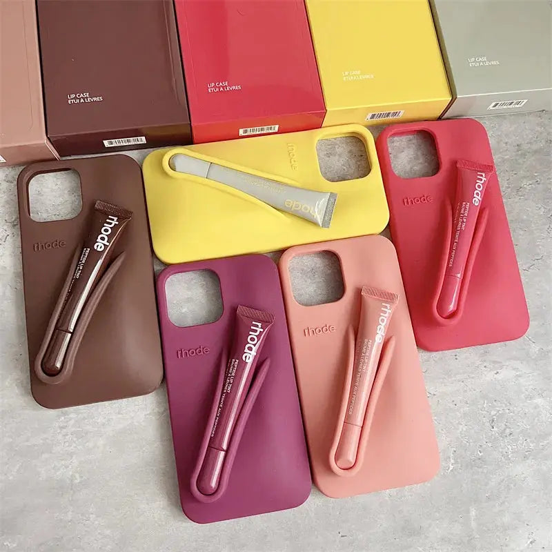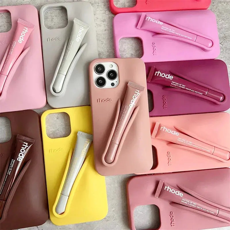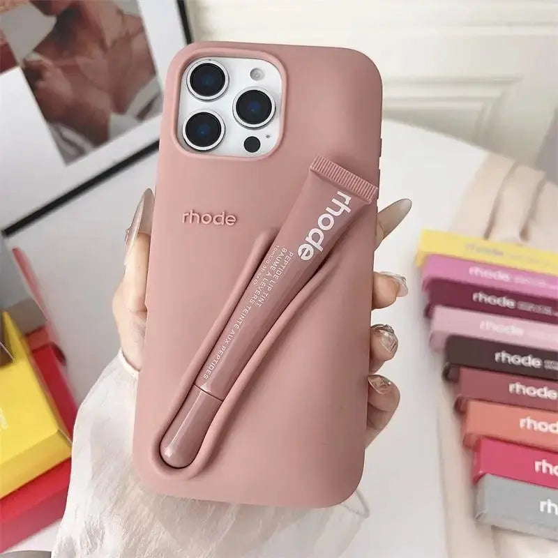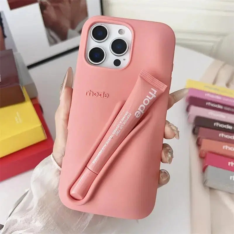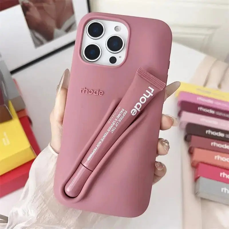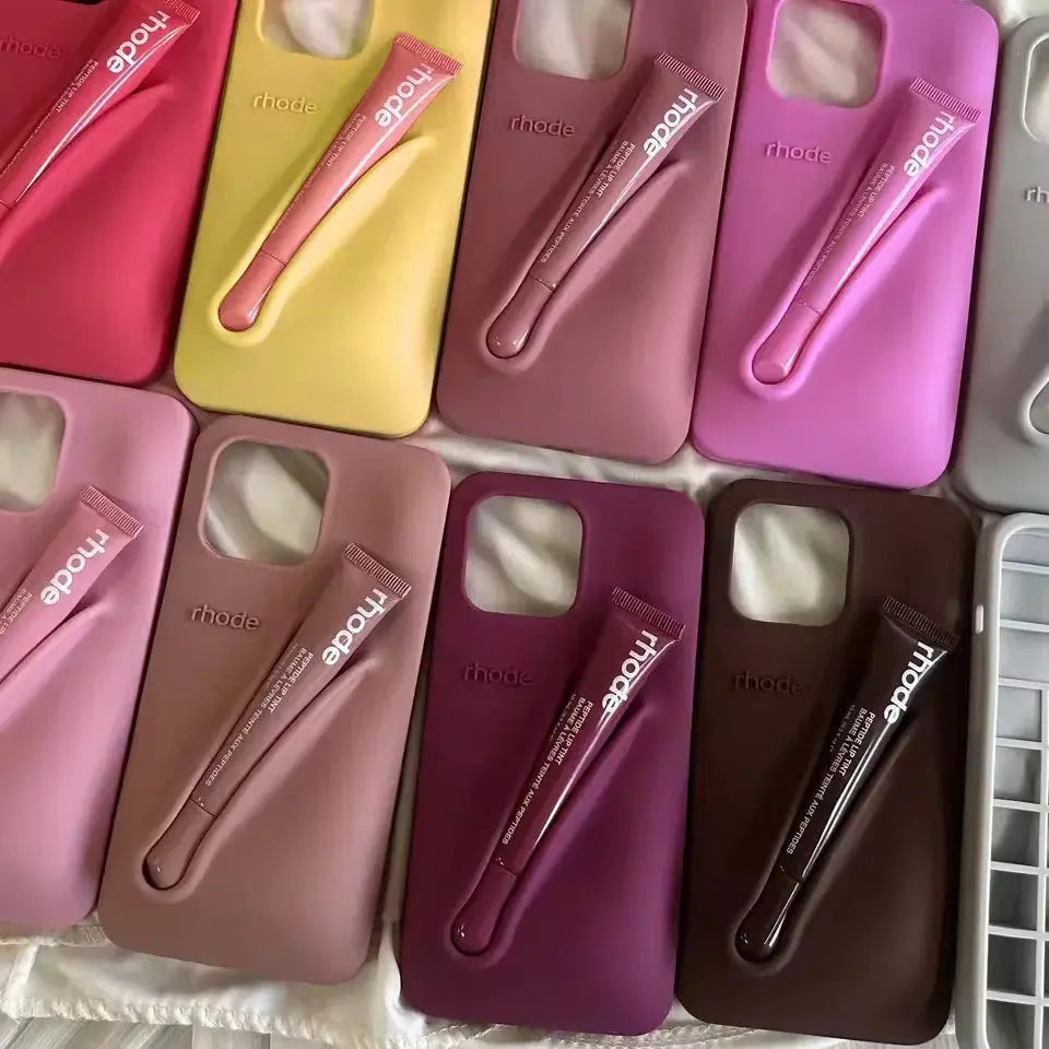 RHODE Lip Gloss Phone Case RHODE Lip Gloss DIY Phone Case with Lipstick Holder for iPhone Shopswoon